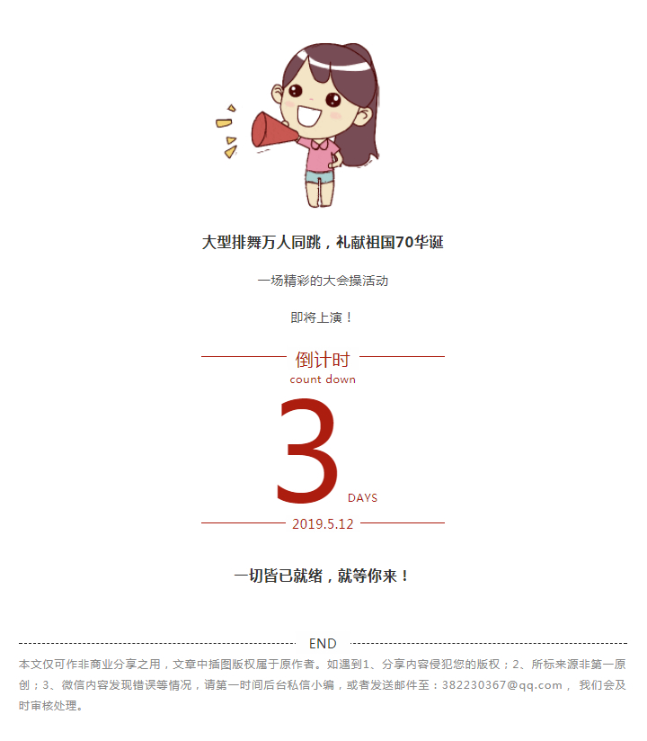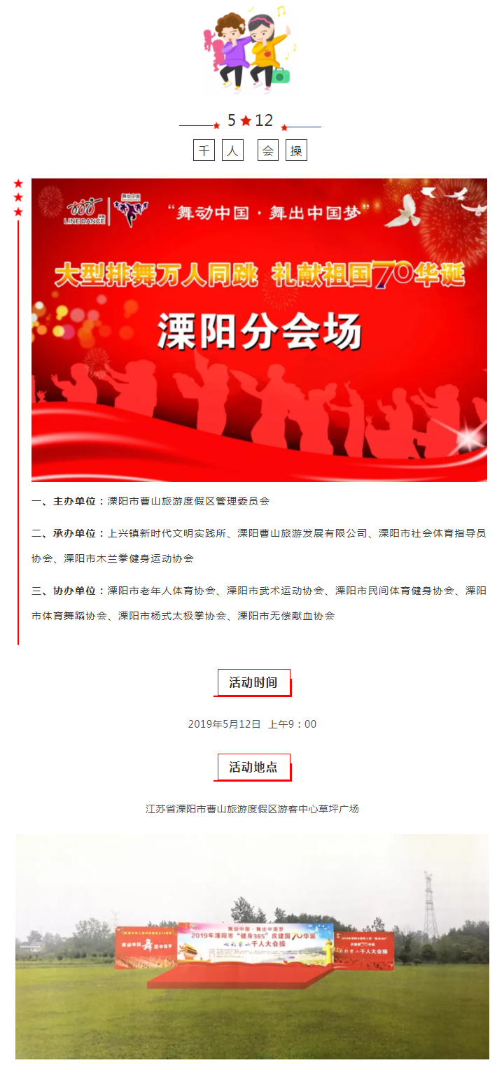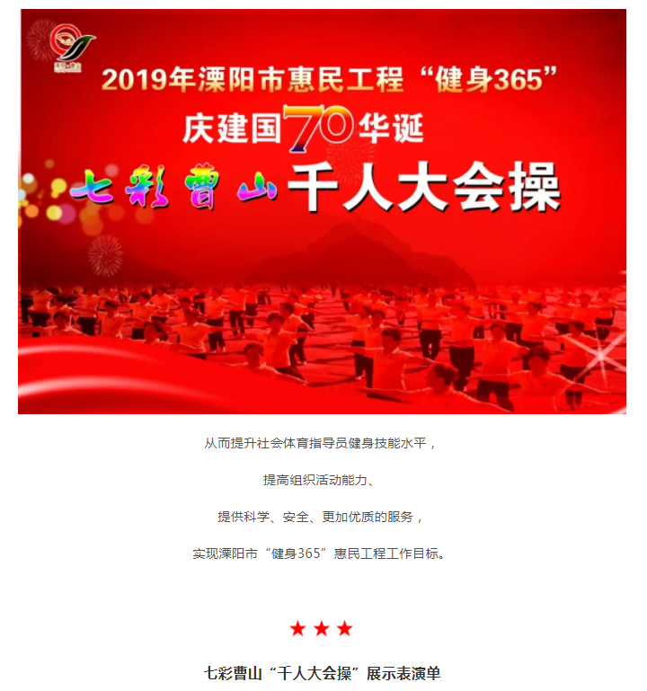 活动预告舞动中国·舞出中国梦!“庆建国70华诞、七彩曹山千人大会操”活动即将精彩上演!