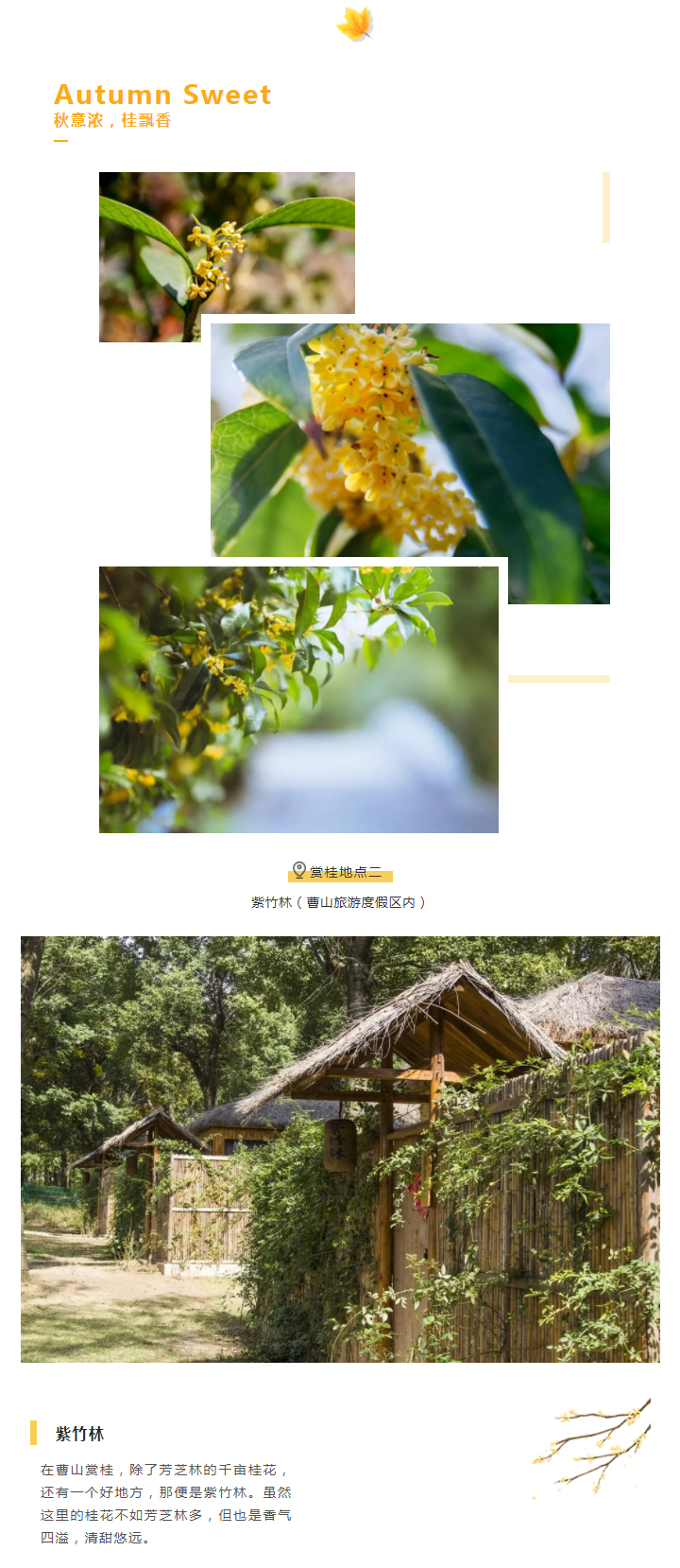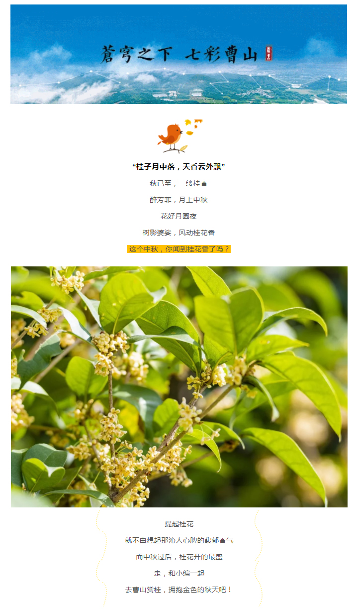 秋渐浓,桂飘香!一起来曹山觅秋吧,闻最甜的桂香,赏醉美的秋色!