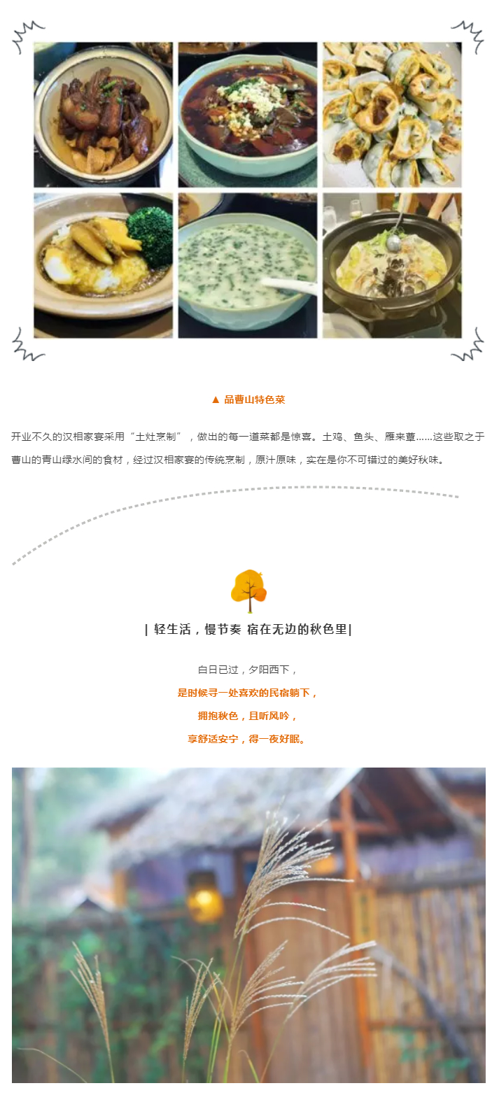 七彩曹山欢迎您来体验深山古刹、古道竹海、曹山花海、十里梅岭、桂花天地等美景,采摘、垂钓、骑行、露营、农家乐......