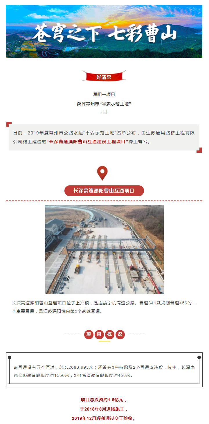 曹山互通已顺利通过交工验收!并获常州“平安示范工地”