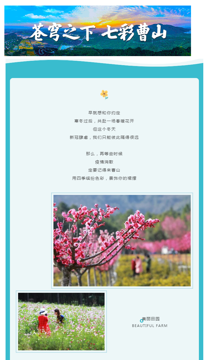 七彩曹山欢迎您来体验深山古刹、古道竹海、曹山花海、十里梅岭、桂花天地等美景,采摘、垂钓、骑行、露营、农家乐......