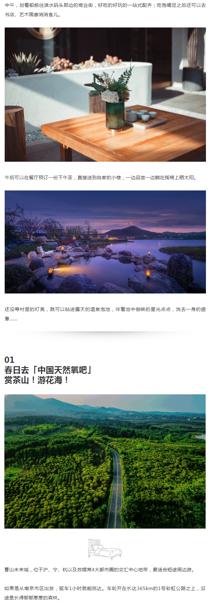 溧阳曹山旅游度假区位于溧阳市西北,与南京的高淳、溧水接壤,规划总面积 50.85 平方千米。其中,省级旅游度假区创建区面积9.02 平方千米,人口1.1万人。曹山旅游度假区入口处即有宁杭高铁瓦屋山站和宁杭高速上兴、…